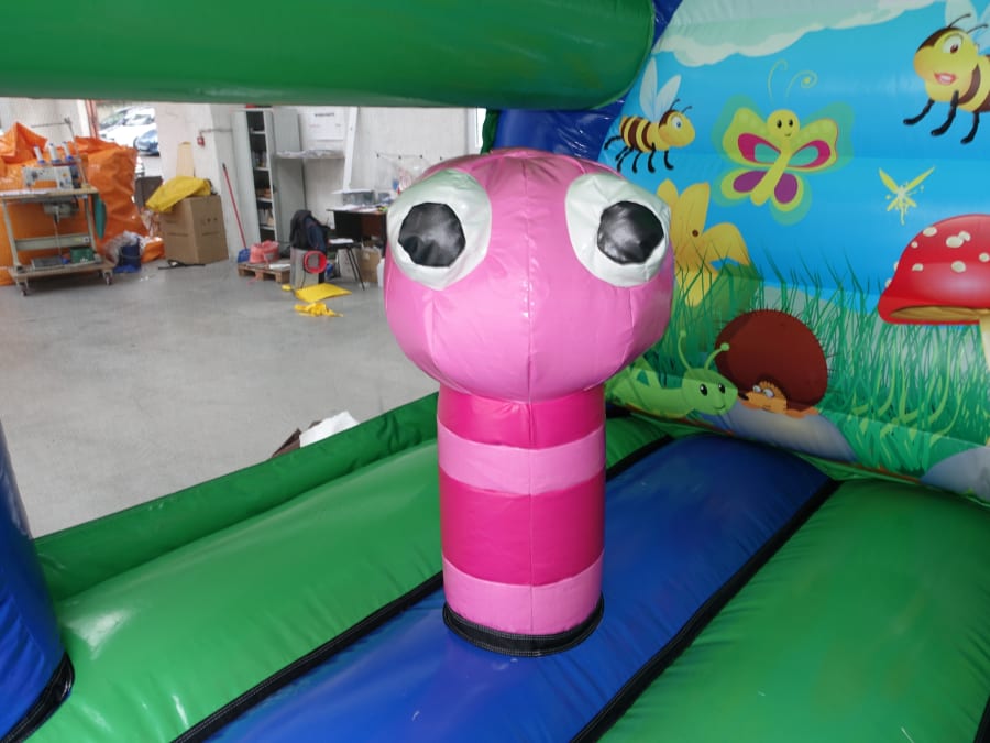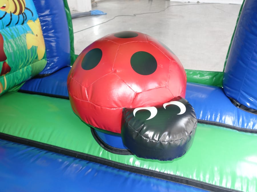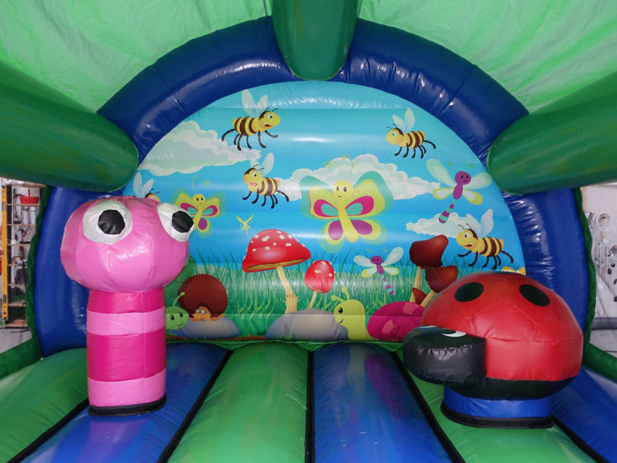 Welcome to the world of fun and adventure with our Bugs Den / Hungry Caterpillar Curved Bouncer! Perfectly sized at 13x13ft and over 11ft high, this 3D toddler bouncy castle is an ideal choice for your child's next party. With its vibrant colors and friendly bug-themed design, it promises endless joy for both boys and girls. 🐛🍎
