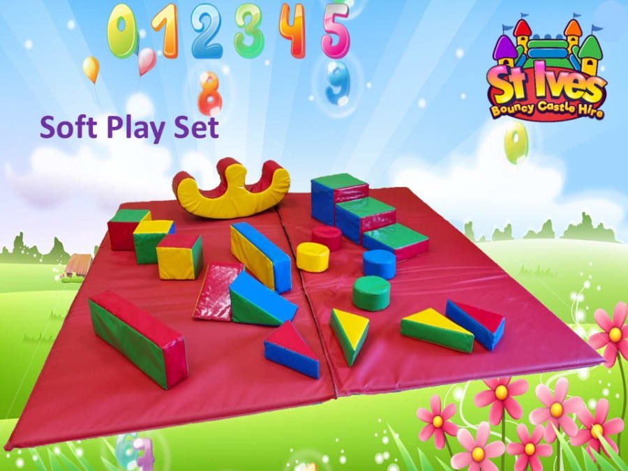 Our brand new for 2023, super gloss finish, 19 Piece, unisex rainbow coloured soft play set, with 10x10ft play mats.